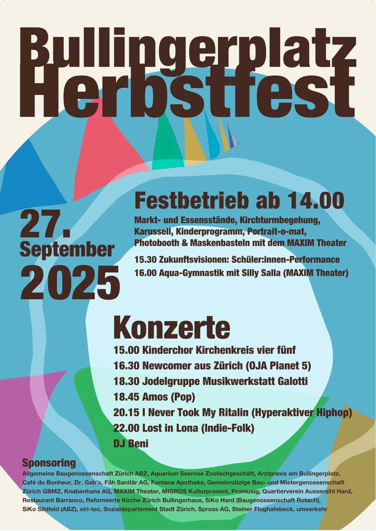Am Samstag 27. September findet das traditionelle Herbstfest am Bullingerplatz statt. Das Fest hat ein umfangreiches Musikprogramm, sowie viele verschiedene andere Darbietungen. Dafür sucht das Organisationskomitee noch Personen die an dem Anlass mithelfen möchten.
